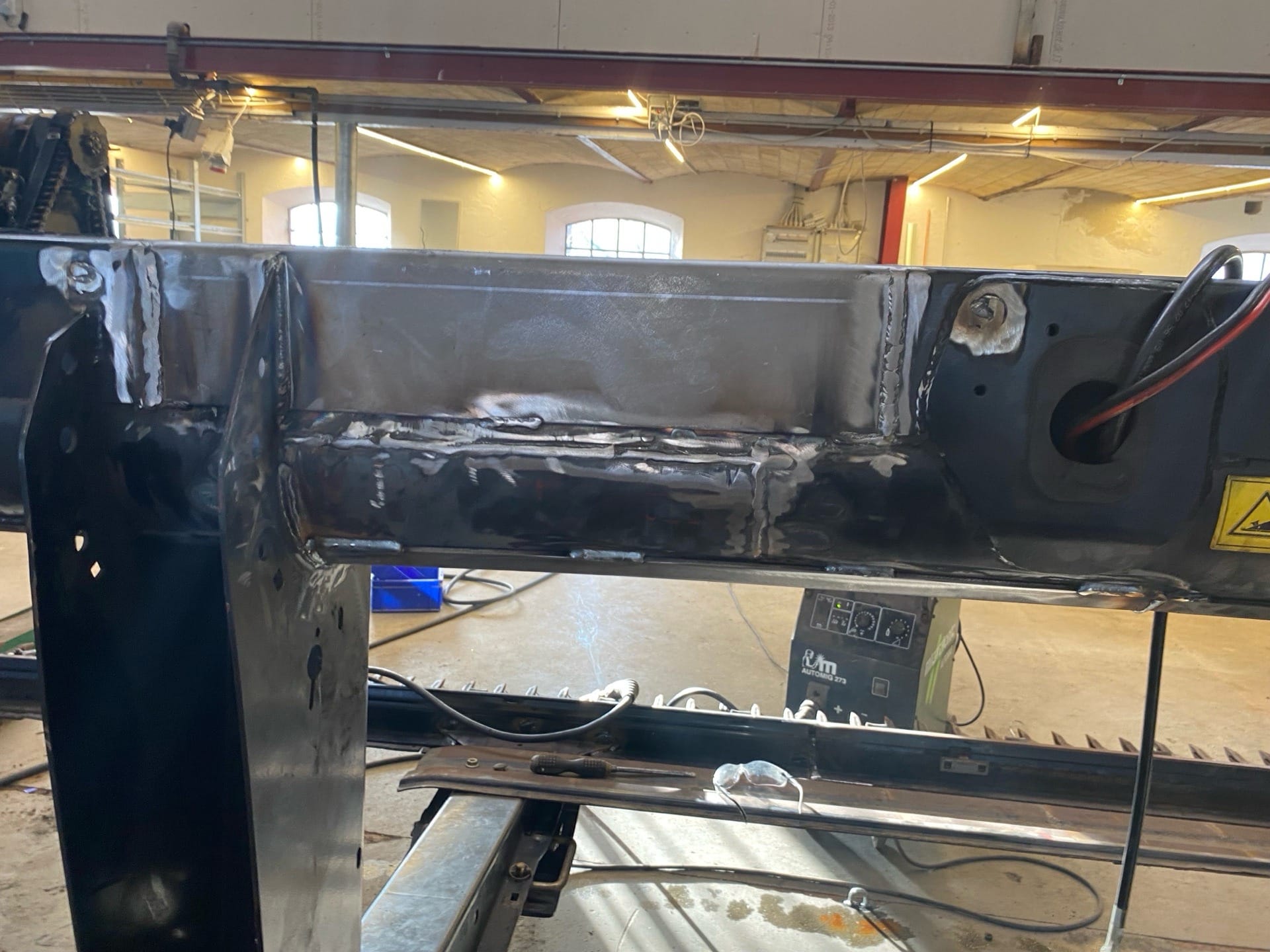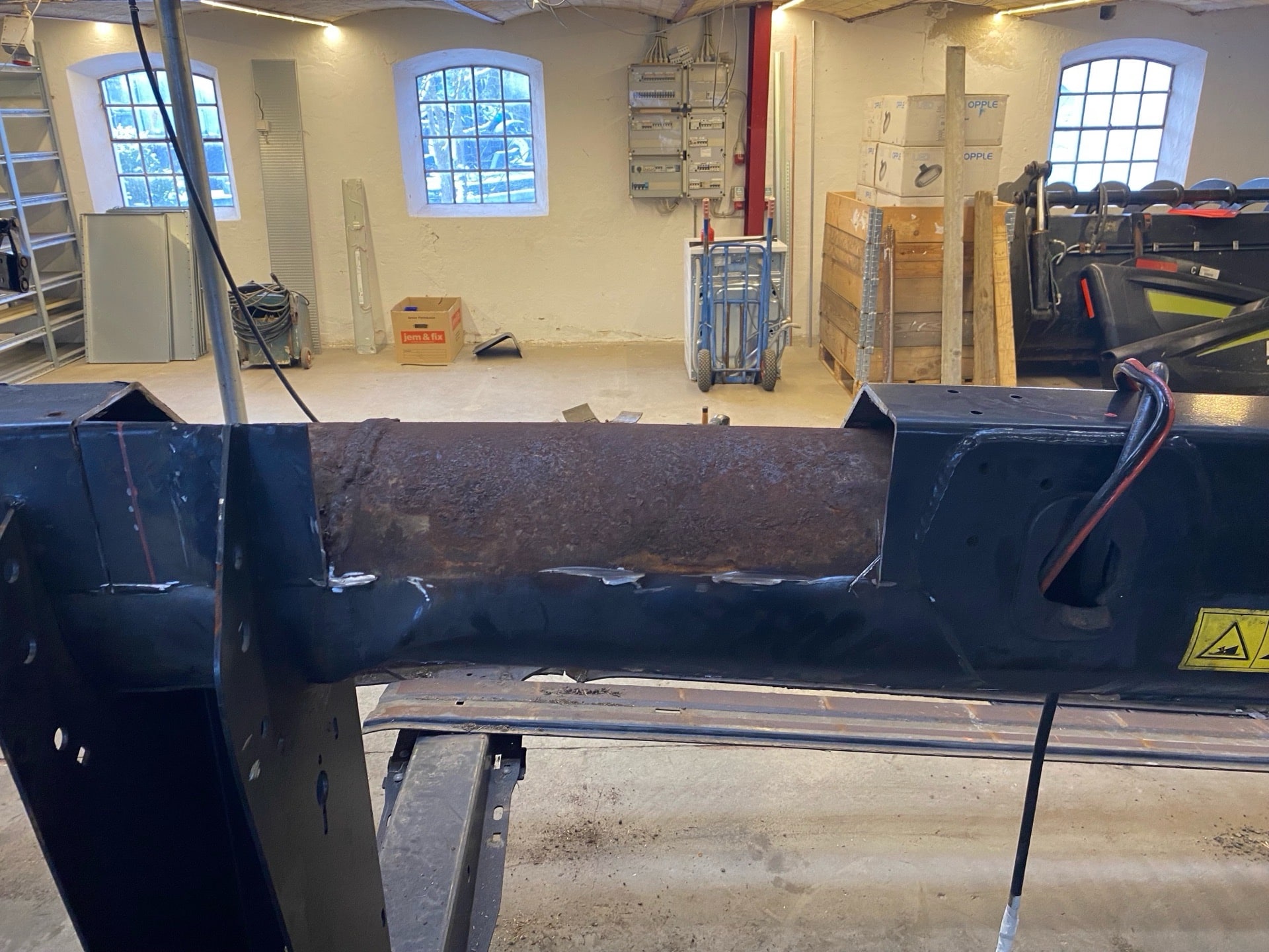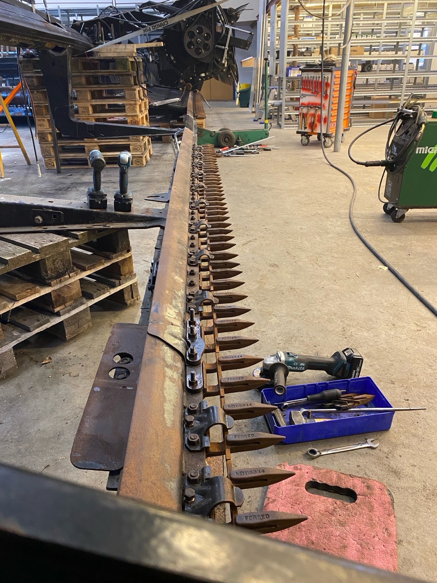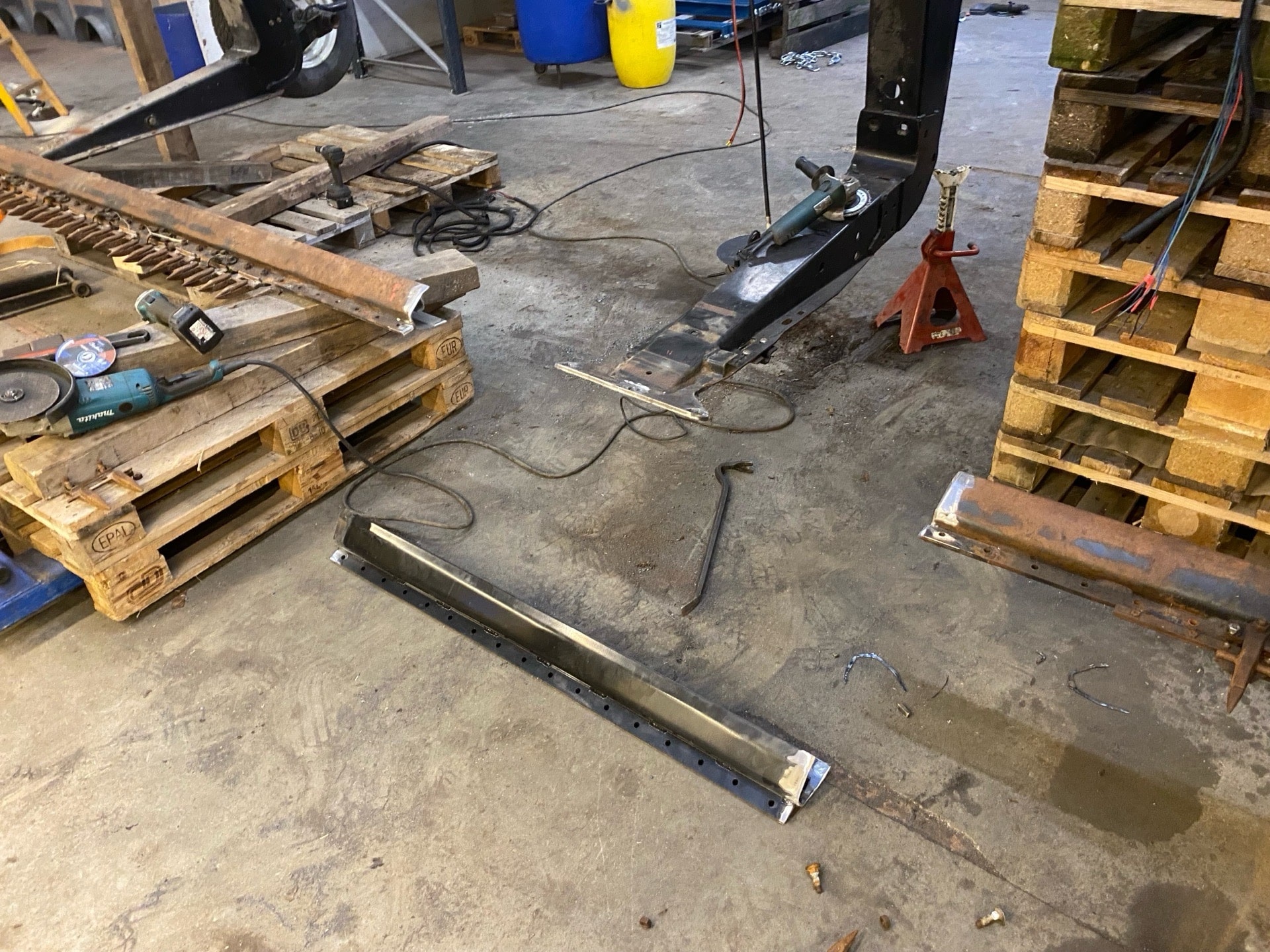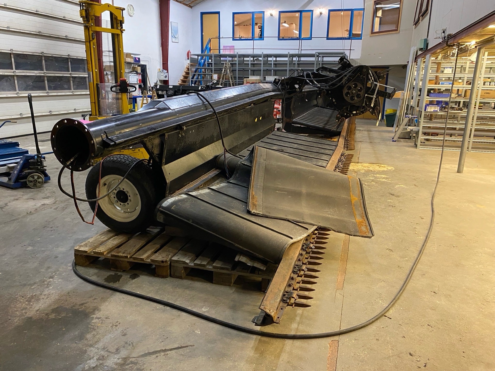 skærebord skæv efter påkørsel med træstub.